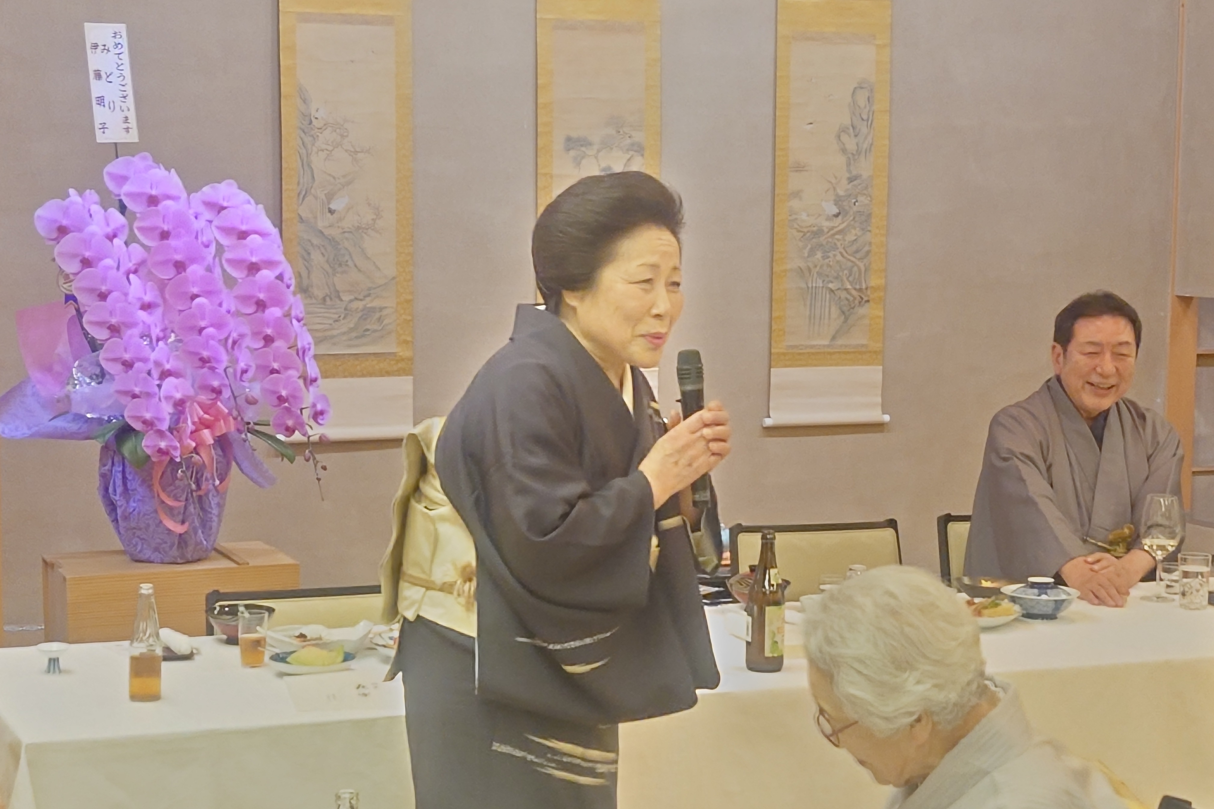 盛岡芸妓よう子姐さんを祝う会が盛岡市の料亭「喜の字」で開催されました。盛岡の伝統文化として定着している盛岡芸妓。65年もの長い年月これを続けてきたよう子姐さん。私も蔵に帰ってから若い時代から酒造組合の総会などが料亭で行われる度にお世話になってきました。私の亡くなった父の代でもお世話になっていて、まさに親子二代、三代で関わっている方々が集いお祝いをしました。まだまだお元気で素晴らしい踊りも健在。長生きしてこれからも盛岡の伝統文化をしっかりと守り続けてほしいです。